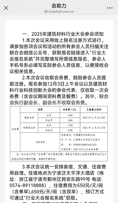 中国建筑材料联合会于2025年12月3日在浙江宁波召开2025年建筑材料行业大会。